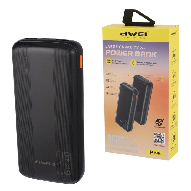 پاور بانک فست شارژ 20000 اوی Awei P19K 2.4A 12W شارژر همراه اوی مدل P19K با ظرفیت 20000 میلی آمپر ساعت