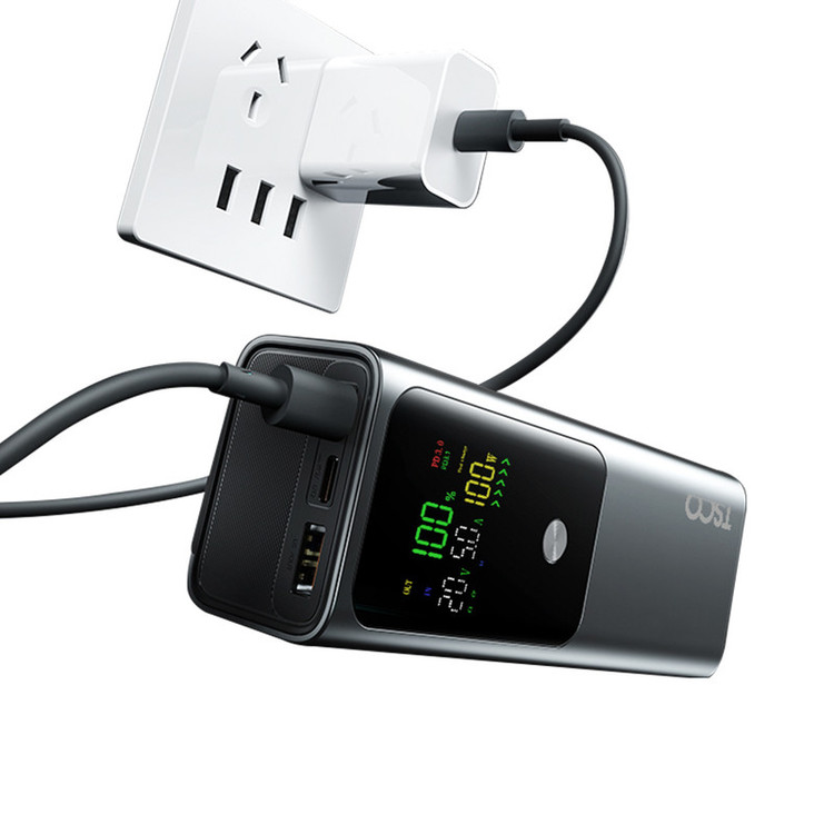 پشتیبانی از پروتکل شارژ سریع PD با توان ۱۰۰ وات دارای نمایشگر LCD برای نمایش وضعیت و بازدهی شارژ طراحی جمعوجور و قابلحمل، مناسب برای جابهجایی آسان