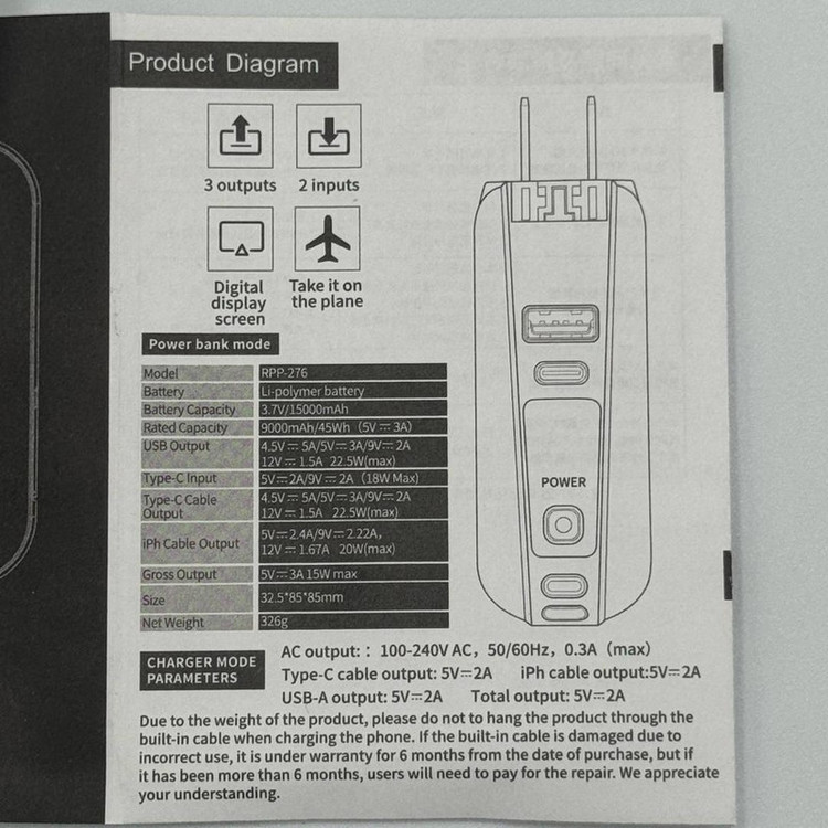 وزن پاوربانک: 326 گرم