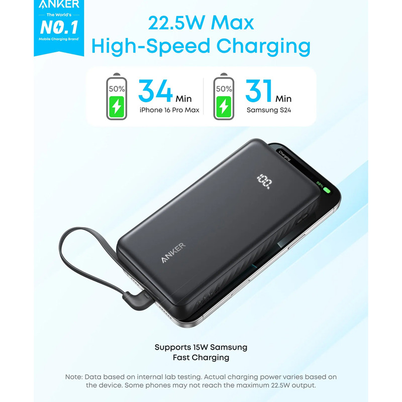 Input: USB-C Cable/USB-C Port: 5V 3A / 9V 2.22A / 12V 1.66A (20W Max) USB-C single port output : 5V 3A / 9V 2.22A / 10V 2.25A (22.5W max) Multiport Output: 5V 3A (15W Max)