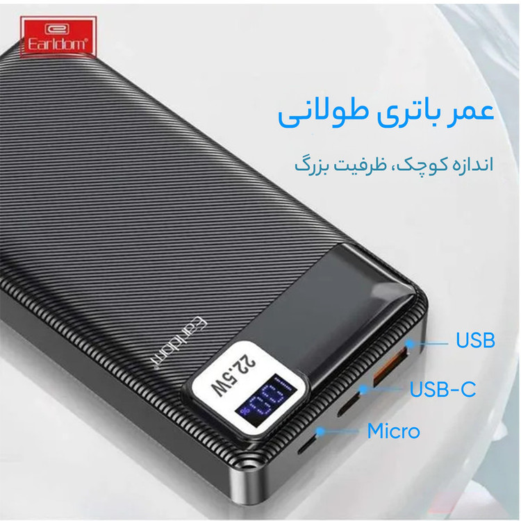 مشخصات فنی: ظرفیت 20000 میلی آمپر خروجی 22.5 وات مجهز به LCD نمایش میزان شارژ حداکثر شدت جریان خروجی؛ 4.5 آمپر 2 درگاه خروجی USB و PD 2 درگاه ورودی؛ PD و MicroYSB حداکثر شدت جریان ورودی ؛ 3.0 آمپر