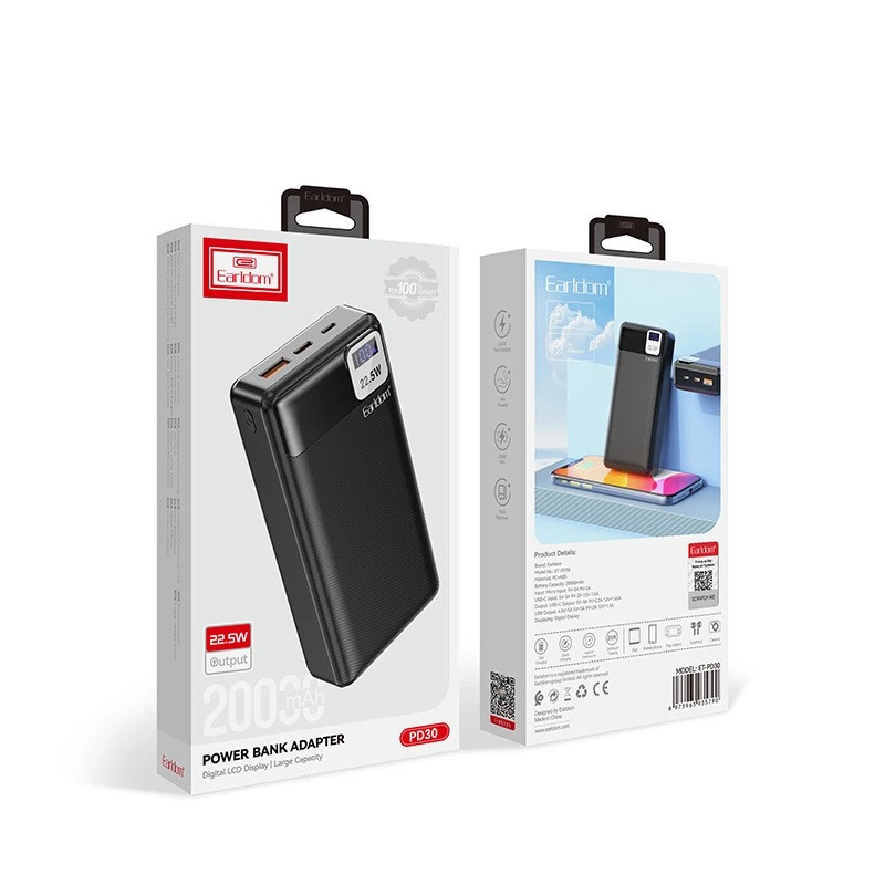 مشخصات فنی: ظرفیت 20000 میلی آمپر خروجی 22.5 وات مجهز به LCD نمایش میزان شارژ حداکثر شدت جریان خروجی؛ 4.5 آمپر 2 درگاه خروجی USB و PD 2 درگاه ورودی؛ PD و MicroYSB حداکثر شدت جریان ورودی ؛ 3.0 آمپر