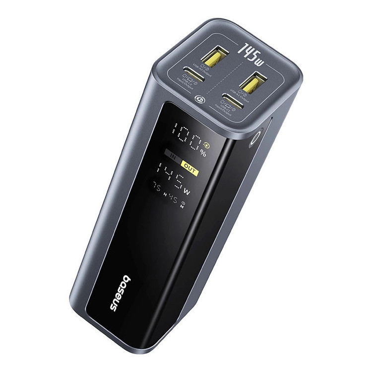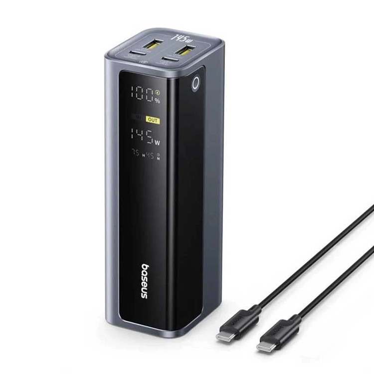 پاوربانک Baseus EnerGeek GP12 با ظرفیت اسمی 20800 mAh و توان خروجی کلی تا 145 W، باتری لیتیوم‑پلیمری، پشتیبانی از شارژ سریع PD، PPS و QC، نمایشگر دیجیتال میزان شارژ، امکان شارژ همزمان چند دستگاه و محافظتهای ایمنی استاندارد