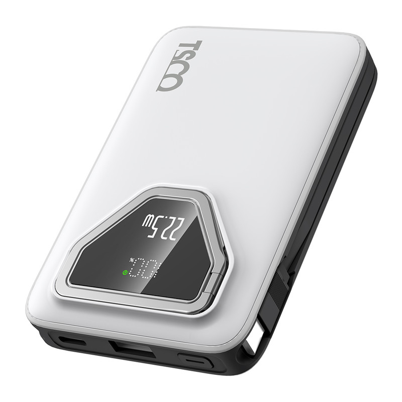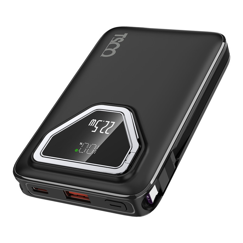وجود کابل Type-C داخلی و جداشونده نیاز به حمل کابل اضافی را برطرف کرده و در کنار آن، خروجیهای Type-C و USB-A امکان شارژ دستگاههای مختلف را فراهم میکنند. طراحی سطح پشتی نیز مانع لغزش گوشی هنگام شارژ بیسیم میشود.