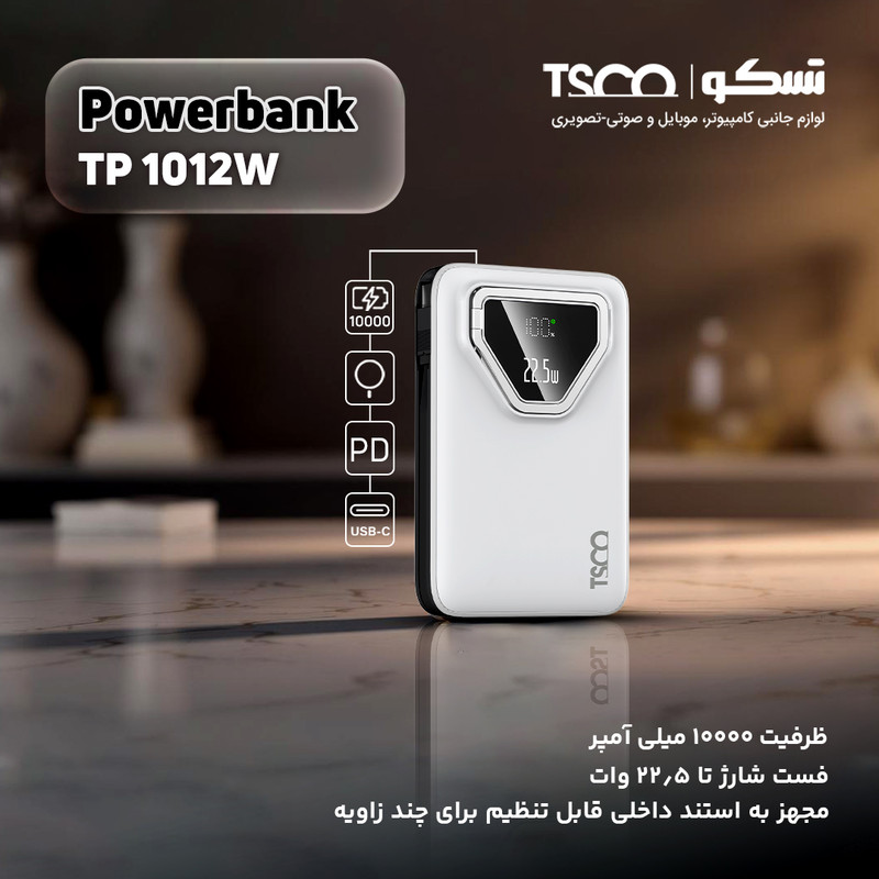 پاوربانک 22.5 وات تسکو مدل TP 1012W ظرفیت 10000 میلیآمپرساعت